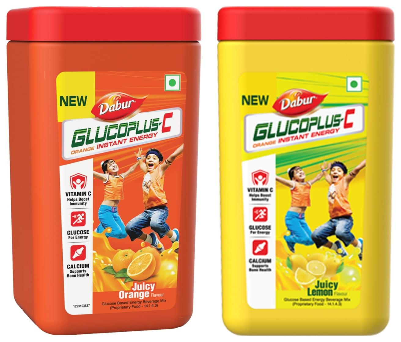 Dabur GlucoPlus-C Jar - Lemon + Orange Combo - 400g (Pack of 2) | Instant Energy Glucose | Juicy & Tasty Flavors