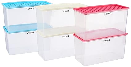 Amazon Brand - Solimo Solimo Plastic Airtight Storage Containers With Handle| Fridge Storage Container | Set Of 6 | 5000Ml Each, Multicolor
