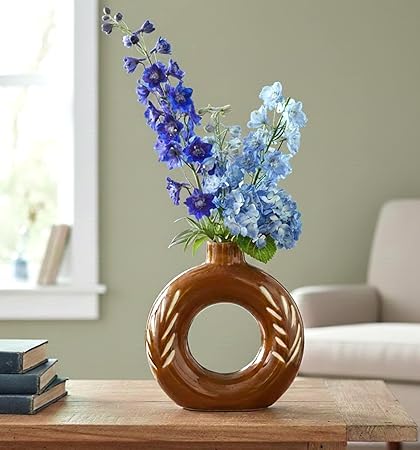 BENAVJI Premium Ceramic Donut Vase Handcrafted Hollow Circular Floral Vessel with Glossy Modern Home, Office Dcor
