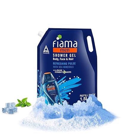 Fiama Men Body Wash Shower Gel Refreshing Pulse, 1.5L Body Wash Refill Value Pouch for Men with Skin Conditioners & Sea Minerals for Soft & Refreshed Skin, Mens Moisturising Bodywash