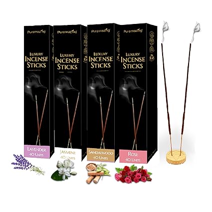 Puremazing Incense Stick|Lavender, Sandalwood, Jasmine, Pink Rose 160 Dhoop Sticks |Natural Incense Stick | Dhoop Sticks with Long Lasting Fragrance | Non Toxic | Agarbatti for Pooja & Havan