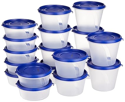 Amazon Brand - Solimo Nestable & Stackable Polypropylene Container Set, Round, Set of 18, Blue