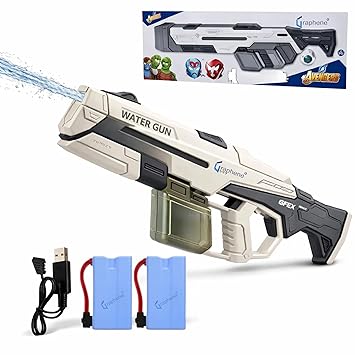 GRAPHENE Electric Water Gun Holi Pichkari 2 in1 Automatic Manual Mode Holi Pichkari 32 ft Long Range High Pressure Squirt Water Gun Rechargeable 1 Extra Battery Boys Girls (White and Grey)