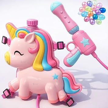 GRAPHENE Pink Holi Pichkari Water Blaster Gun 1900ml High Pressure Mechanism for Long Throw Squirt Tank Spray Pistol 100 Balloons Back Holding for Kid Boys Girls (Unicorn)